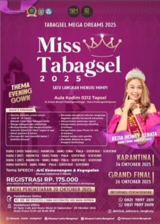 Padangsidimpuan (29/10/2025) – Fakultas Dakwah dan Ilmu Komunikasi UIN Syahada Padangsidimpuan kembali menorehkan kebanggaan. Mahasiswi Program Studi Manajemen Dakwah, Sarimas Daulay, berhasil meraih Juara 1 (Winner) dalam ajang Miss Tabagsel 2025 yang diselenggarakan oleh Sidimpuan Kreative Management di bawah pimpinan Bapak Defrizal Ashwara Rangkuty.