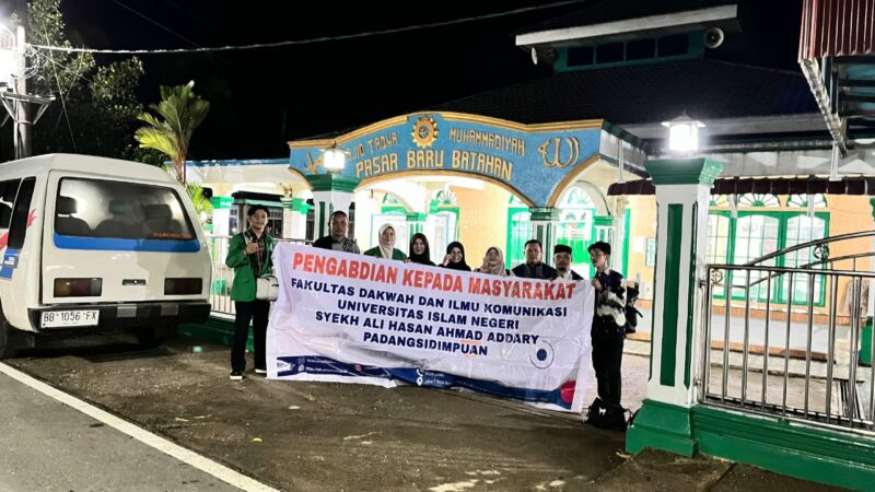 Padangsidimpuan, 24 Oktober 2025. Fakultas Dakwah dan Ilmu Komunikasi Program Studi Komunikasi dan Penyiaran Islam (KPI) dan Bimbingan dan Konseling Islam (BKI) melaksanakan kegiatan Pengabdian Kepada Masyarakat di Kecamatan Batahan, Desa Sari Kenanga, pada tanggal 24–25 Oktober 2025.