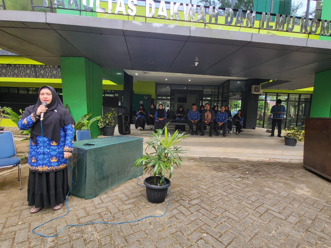 Padangsidimpuan, 01 Oktober 2025 – Fakultas Dakwah dan Ilmu Komunikasi kembali menyelenggarakan kegiatan Character Building pada minggu ke-5 yang berlangsung pada hari Rabu, 01 Oktober 2025, bertempat di depan Gedung FDIK. Acara dimulai pukul 08.00 WIB hingga selesai dan dihadiri oleh jajaran pimpinan fakultas, dosen, tenaga kependidikan, serta seluruh mahasiswa FDIK.