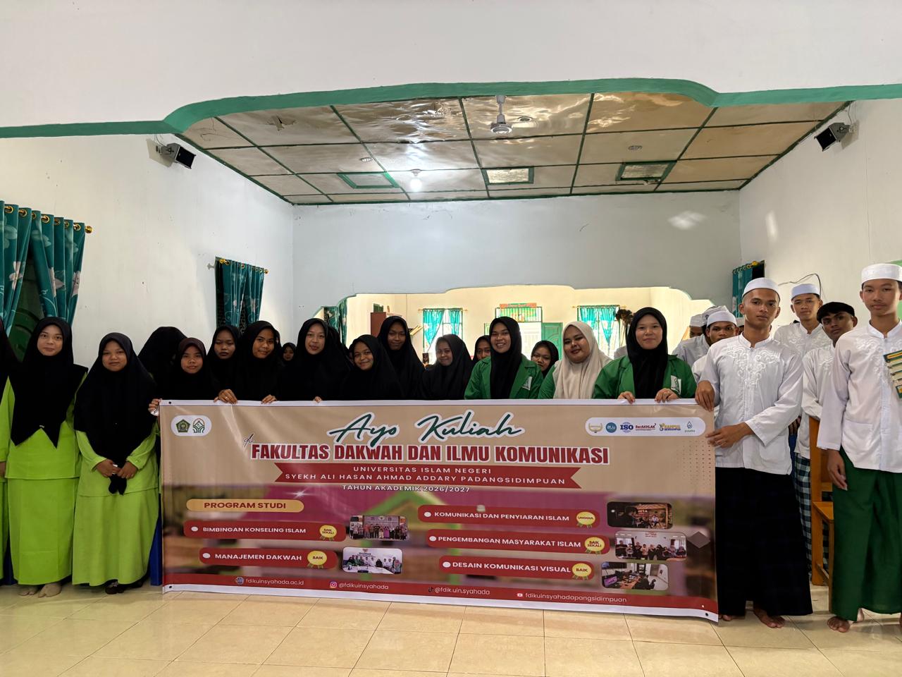 Padang Lawas, 13 Desember 2025 – Fakultas Dakwah dan Ilmu Komunikasi UIN Syekh Ali Hasan Ahmad Addary Padangsidimpuan menggelar kegiatan Goes to School sebagai upaya memperkenalkan prodi dan peluang pendidikan tinggi kepada siswa Yayasan Pondok Pesantren Al-Hakiamiyah Paringgonan, Sabtu (13/12/2025). Kegiatan ini merupakan bagian dari komitmen fakultas dalam memperluas literasi pendidikan serta menumbuhkan kesadaran pentingnya melanjutkan studi ke jenjang perguruan tinggi.