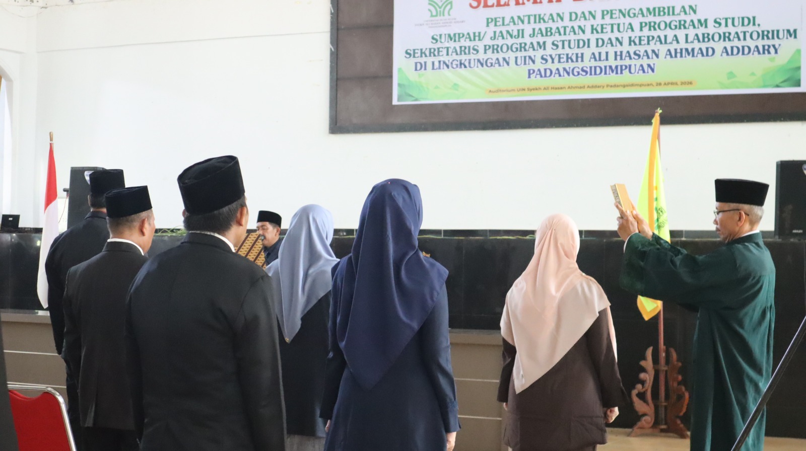 Padangsidimpuan, 28 April 2026 – Fakultas Dakwah dan Ilmu Komunikasi UIN Syekh Ali Hasan Ahmad Addary Padangsidimpuan kembali menorehkan langkah strategis dalam penguatan tata kelola akademik melalui pelantikan Ketua Program Studi dan Kepala Laboratorium yang baru.