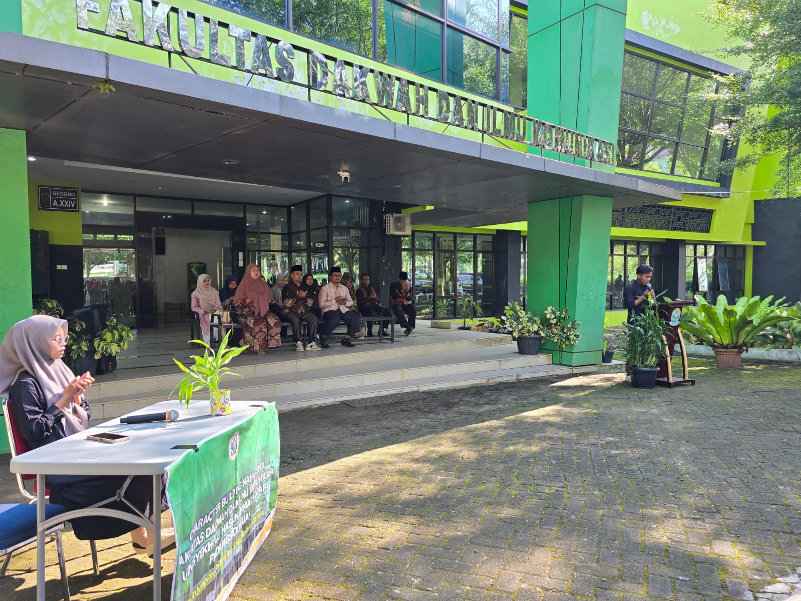 Padangsidimpuan, 22 April 2026 – Fakultas Dakwah dan Ilmu Komunikasi melaksanakan kegiatan perdana Character Building pasca libur Hari Raya Idulfitri yang berlangsung di depan Gedung FDIK, Rabu (22/04). Kegiatan ini dihadiri oleh jajaran pimpinan fakultas, mulai dari para wakil dekan, ketua program studi, dosen, tenaga kependidikan, hingga mahasiswa.