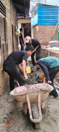Setibanya di lokasi kegiatan, mahasiswa FDIK terlibat aktif dalam berbagai tahapan pembangunan hunian sementara (Huntara) bagi warga terdampak banjir. Para mahasiswa bahu-membahu melakukan pengangkutan material bangunan, membantu pengerjaan fisik hunian, serta memberikan pendampingan sosial dan psikologis kepada warga, terutama anak-anak dan kelompok rentan.