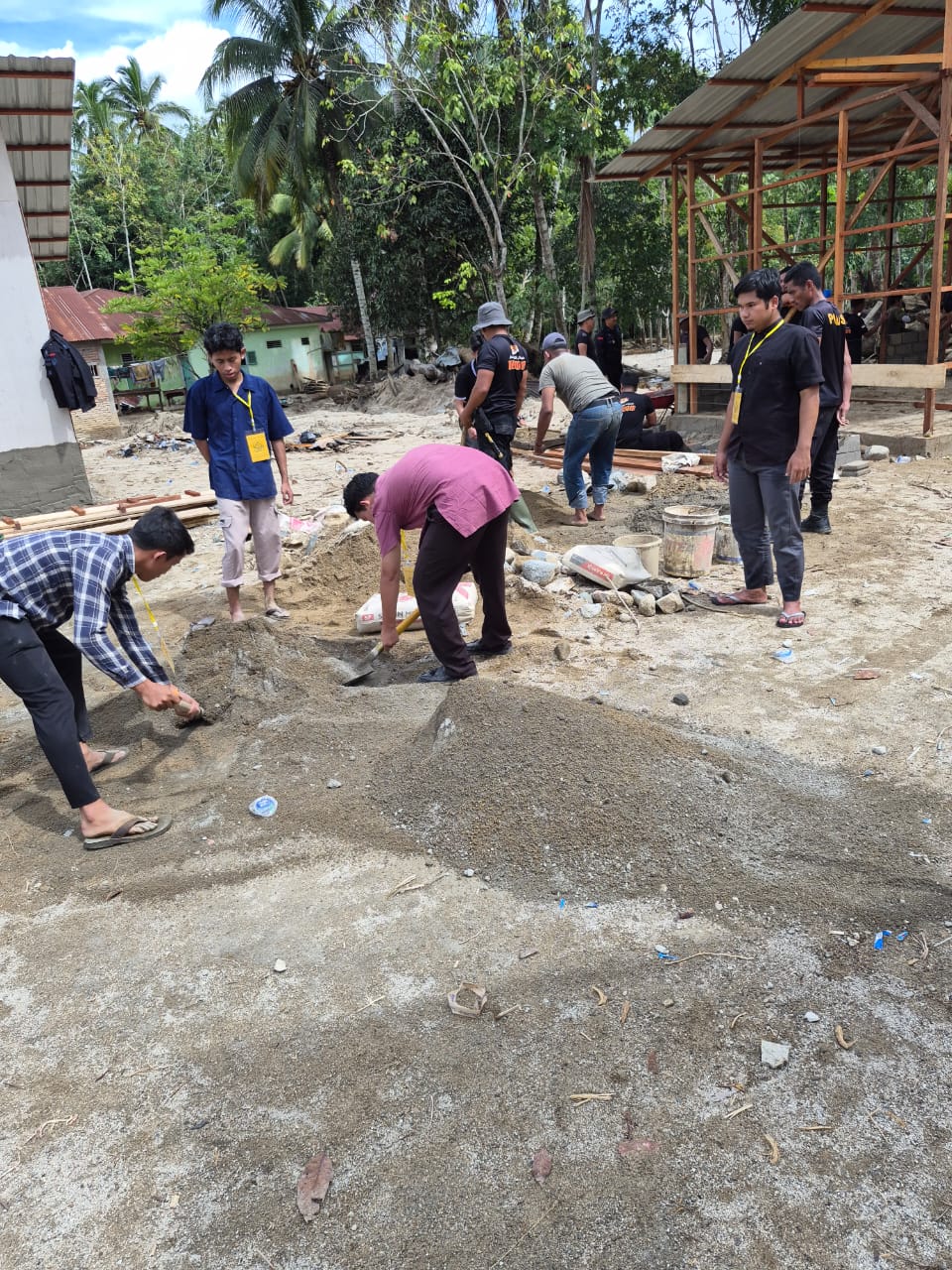 Setibanya di lokasi kegiatan, mahasiswa FDIK terlibat aktif dalam berbagai tahapan pembangunan hunian sementara (Huntara) bagi warga terdampak banjir. Para mahasiswa bahu-membahu melakukan pengangkutan material bangunan, membantu pengerjaan fisik hunian, serta memberikan pendampingan sosial dan psikologis kepada warga, terutama anak-anak dan kelompok rentan.