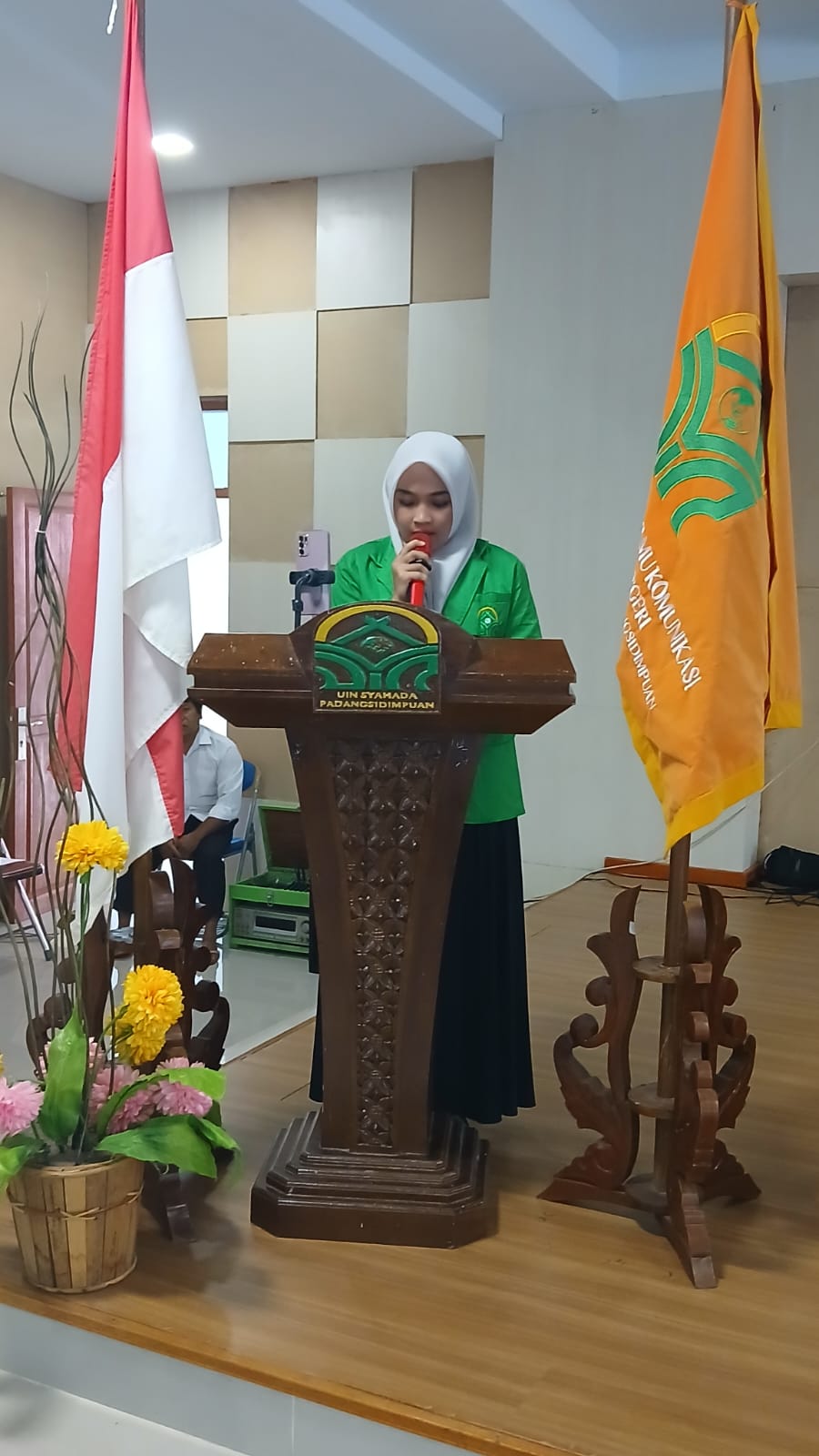 Acara diawali dengan pembukaan oleh MC, dilanjutkan dengan menyanyikan lagu Indonesia Raya, Mars UIN Syahada Padangsidimpuan, dan pembacaan doa. Suasana akademik semakin terasa ketika Ketua Panitia, Dr. Anas Habibi Ritonga, M.A., menyampaikan laporannya bahwa jumlah peserta mencapai 400 orang yang terdiri dari seluruh program studi di FDIK, mulai dari mahasiswa semester 1, 3, 5, hingga 7. Lebih lanjut, ia menjelaskan bahwa tema “Dakwah Ekologi dalam Membangun Masyarakat Multikultural” dipilih sebagai upaya memperkuat wawasan mahasiswa terhadap urgensi dakwah berbasis lingkungan di tengah keberagaman masyarakat. Ia berharap kegiatan ini tidak hanya menambah pengetahuan, tetapi juga menginspirasi mahasiswa untuk berperan aktif dalam menjaga lingkungan melalui pendekatan dakwah yang humanis dan inklusif.