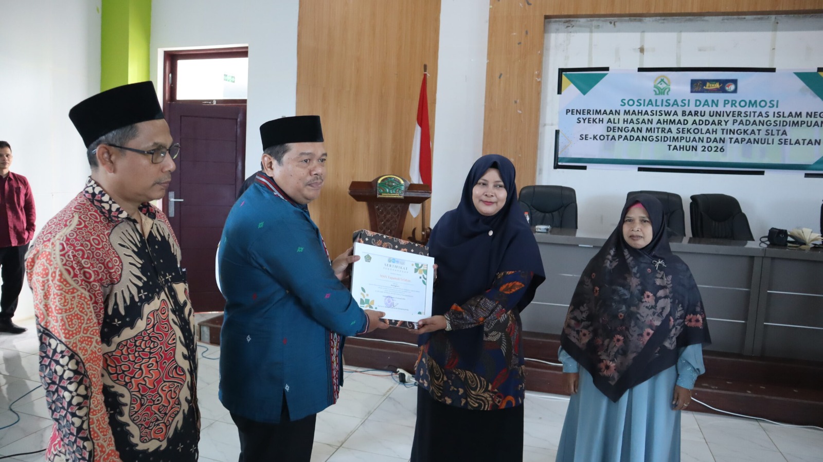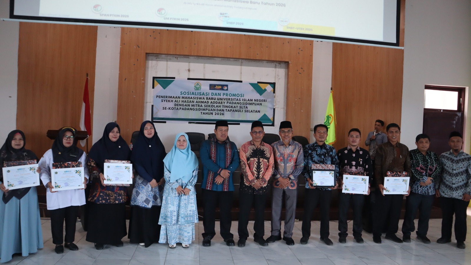 Padangsidimpuan. 04/02/2026. Universitas Islam Negeri (UIN) Syekh Ali Hasan Ahmad Addary Padangsidimpuan (UIN Syahada) menggelar kegiatan Sosialisasi dan Promosi Penerimaan Mahasiswa Baru (PMB) Tahun 2026 bersama mitra sekolah tingkat SLTA se-Kota Padangsidimpuan dan Kabupaten Tapanuli Selatan. Kegiatan ini berlangsung di Gedung Aula Terpadu UIN Syahada Padangsidimpuan, Rabu (04/02/2026).